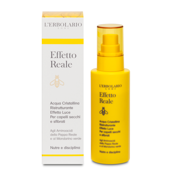 Questa innovativa Acqua Cristallina, in forza degli esclusivi Aminoacidi della Pappa Reale è capace di nutrire e ristrutturare anche i capelli più danneggiati e secchi. Basta un semplice gesto: spruzzando una piccola quantità di Acqua Cristallina risulterà molto facile perfezionare e definire la messa in piega, lasciando che i capelli interpretino un effetto luce tutto da ammirare.
