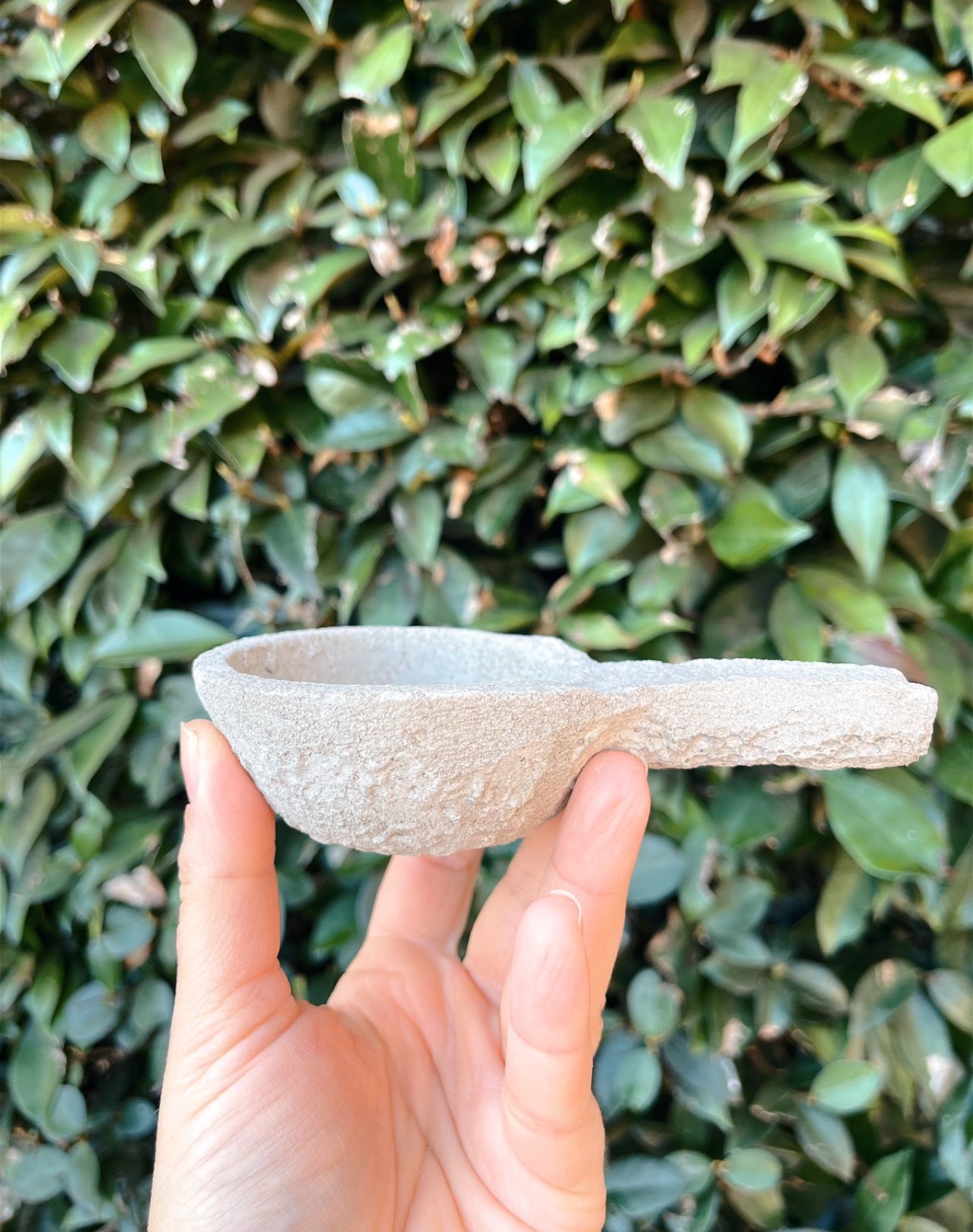 Bruciatore in cemento artigianale adatto per le alte temperature. Di grande resistenza è l'ideale per bruciare tutti i tipi di smudge, carboncini per l'incenso in grani, coni, palo santo.
