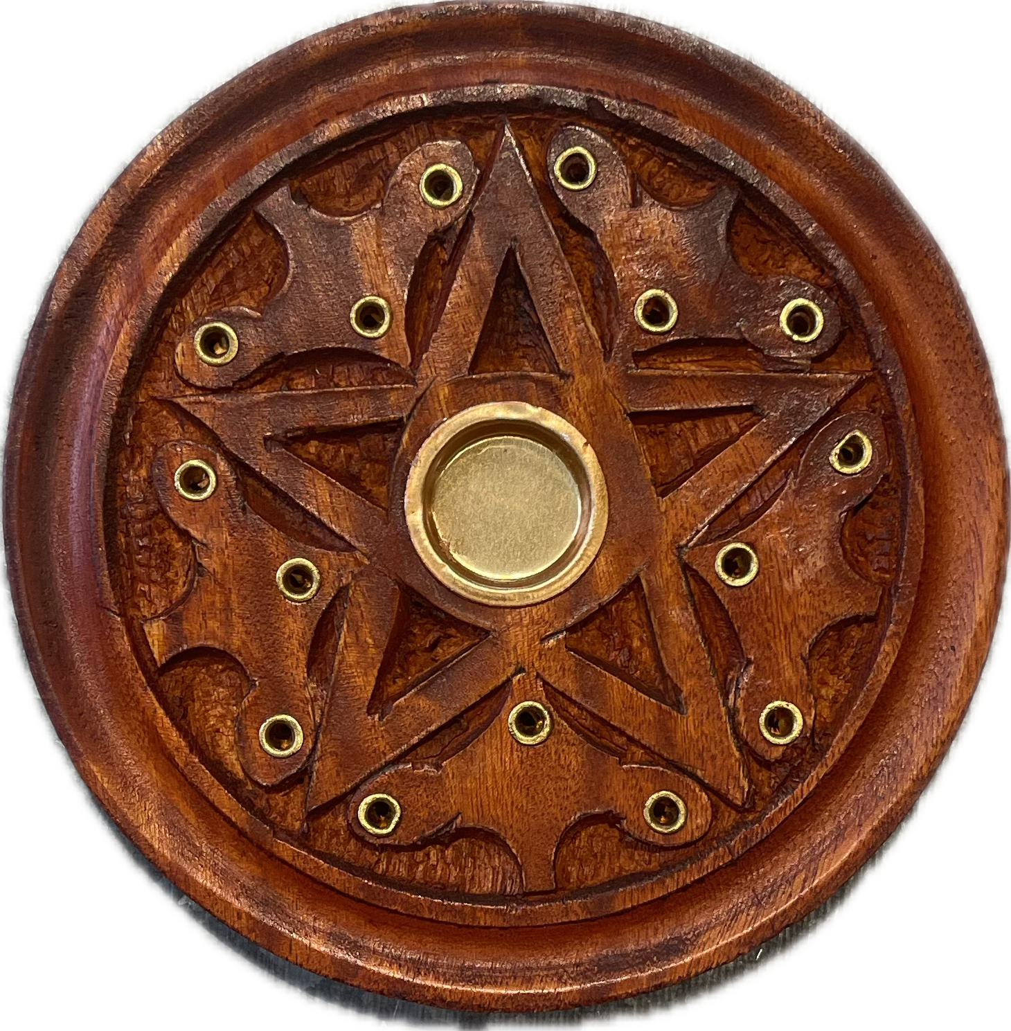 Brucia Incenso Rotondo in Legno Mango - Pentagramma