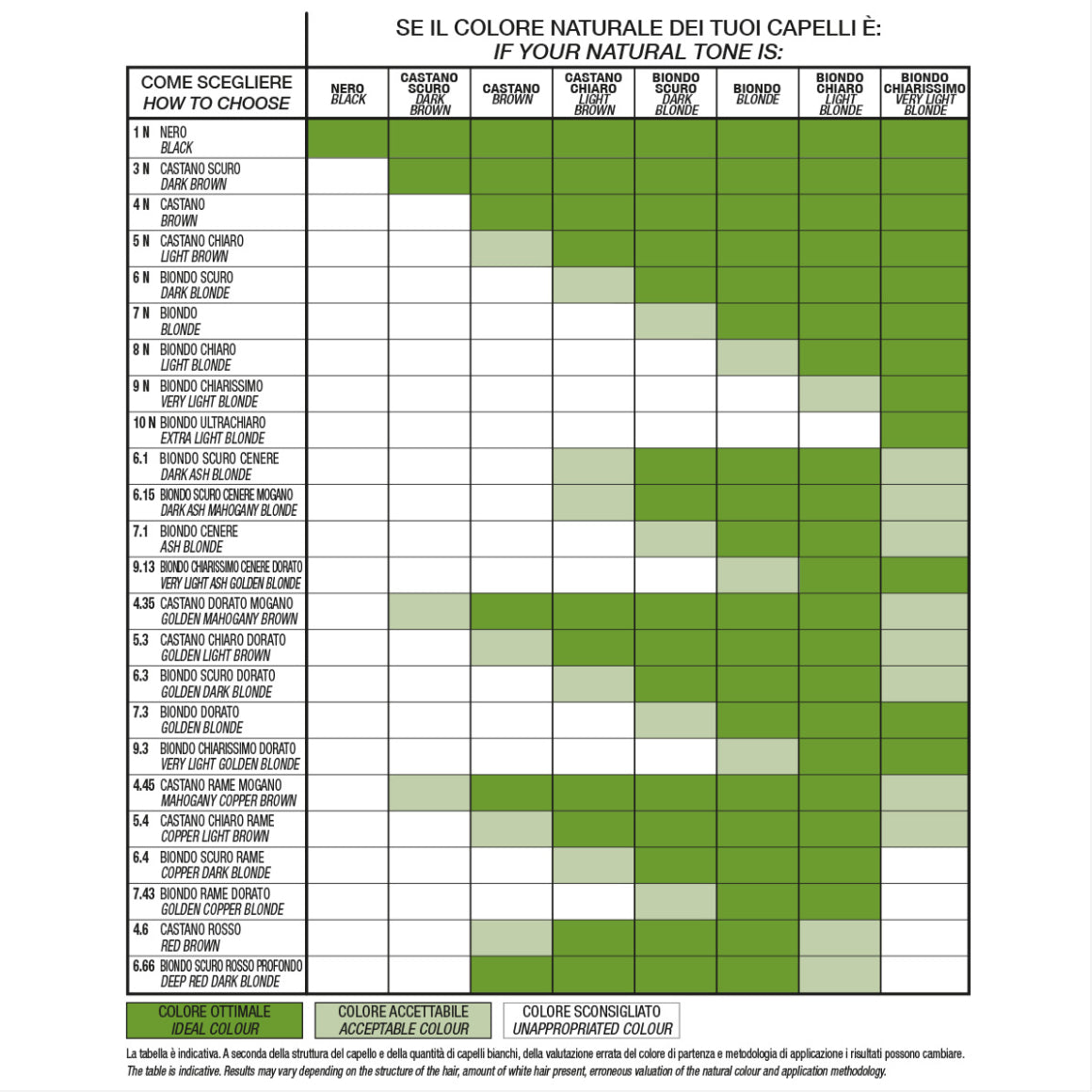 Formulata con olii biologici vegetali e non petrolati, oli minerali, lanoline, siliconi e peg, per il miglior nutrimento e ristrutturazione della fibra e del cuoio capelluto. I coloranti, inevitabili per la buona riuscita della tinta, sono stati attentamente selezionati eliminando quelli ad alto rischio di allergia come la p-fenilendiammina e resorcina che sono stati sostituiti da sostanze tollerate anche dalle pelli più sensibili come risulta dai test effettuati. La valutazione dei pigmenti, tutti di alta qualità ,è stata attenta e laboriosa in modo che il risultato fosse accurato e che i capelli bianchi potessero essere perfettamente coperti. -