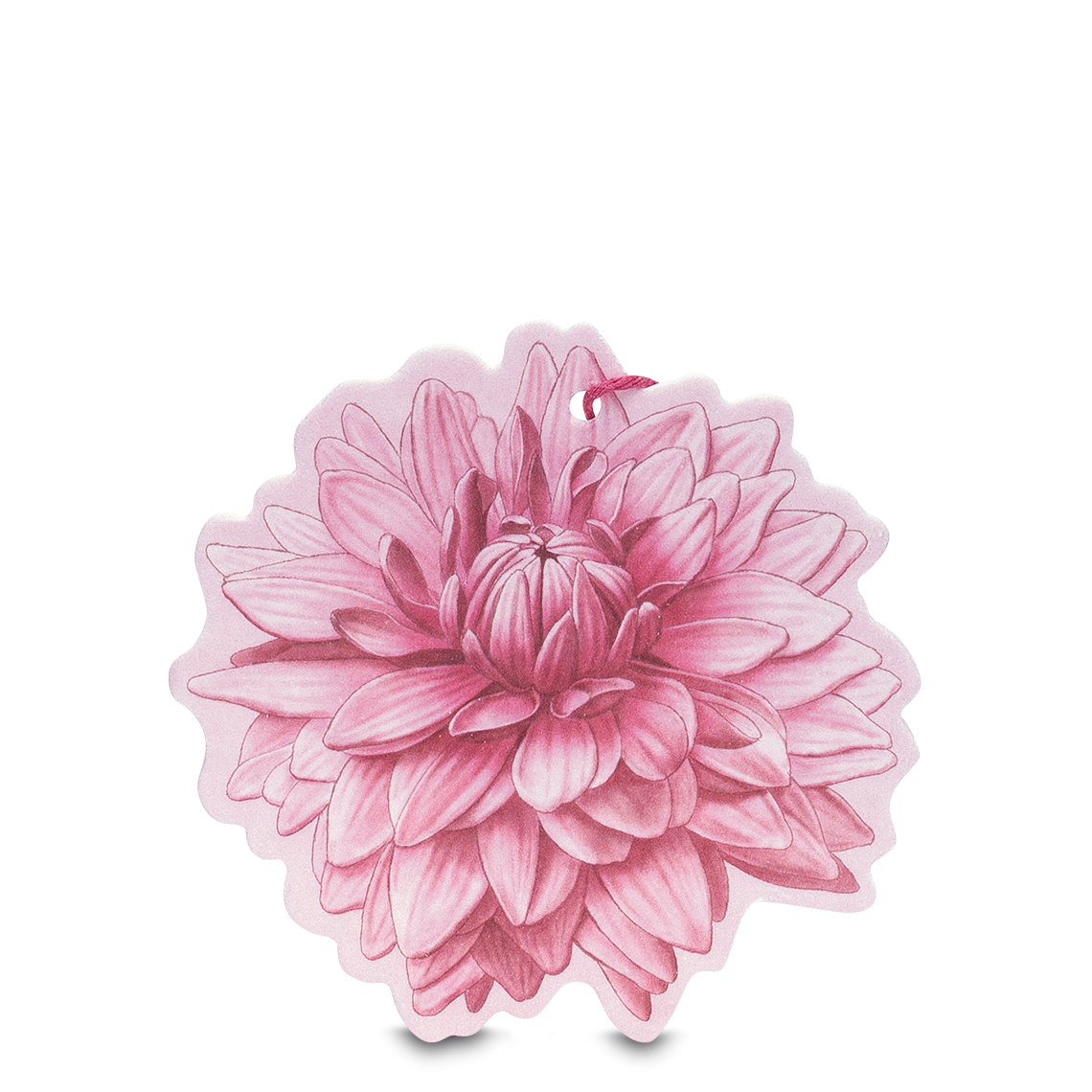 Un cartoncino profumato, dalla foggia di fiore di Dalia, ideale per profumare gli armadi, i cassetti o l’abitacolo dell’auto.