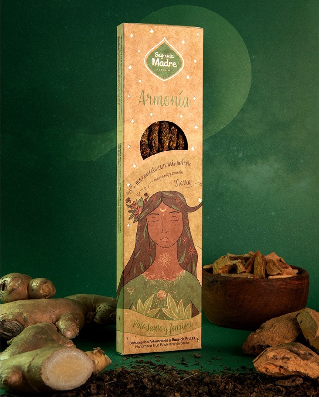 Il caldo profumo del Palo Santo dà stabilità e fiducia, combinato con la vibrante fragranza dello zenzero attivano la connessione con la madre terra.