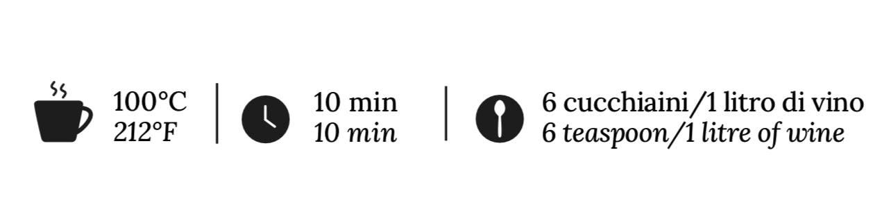 "In questo preparato per il Vin Brûlé, basteranno solo 100°C e 10 minuti per ottenere un delizioso e aromatico vino speziato. Con 6 cucchiaini per ogni litro di vino, potrai facilmente preparare questa bevanda tipica delle festività natalizie, portando un tocco di calore e tradizione alla tua tavola!"