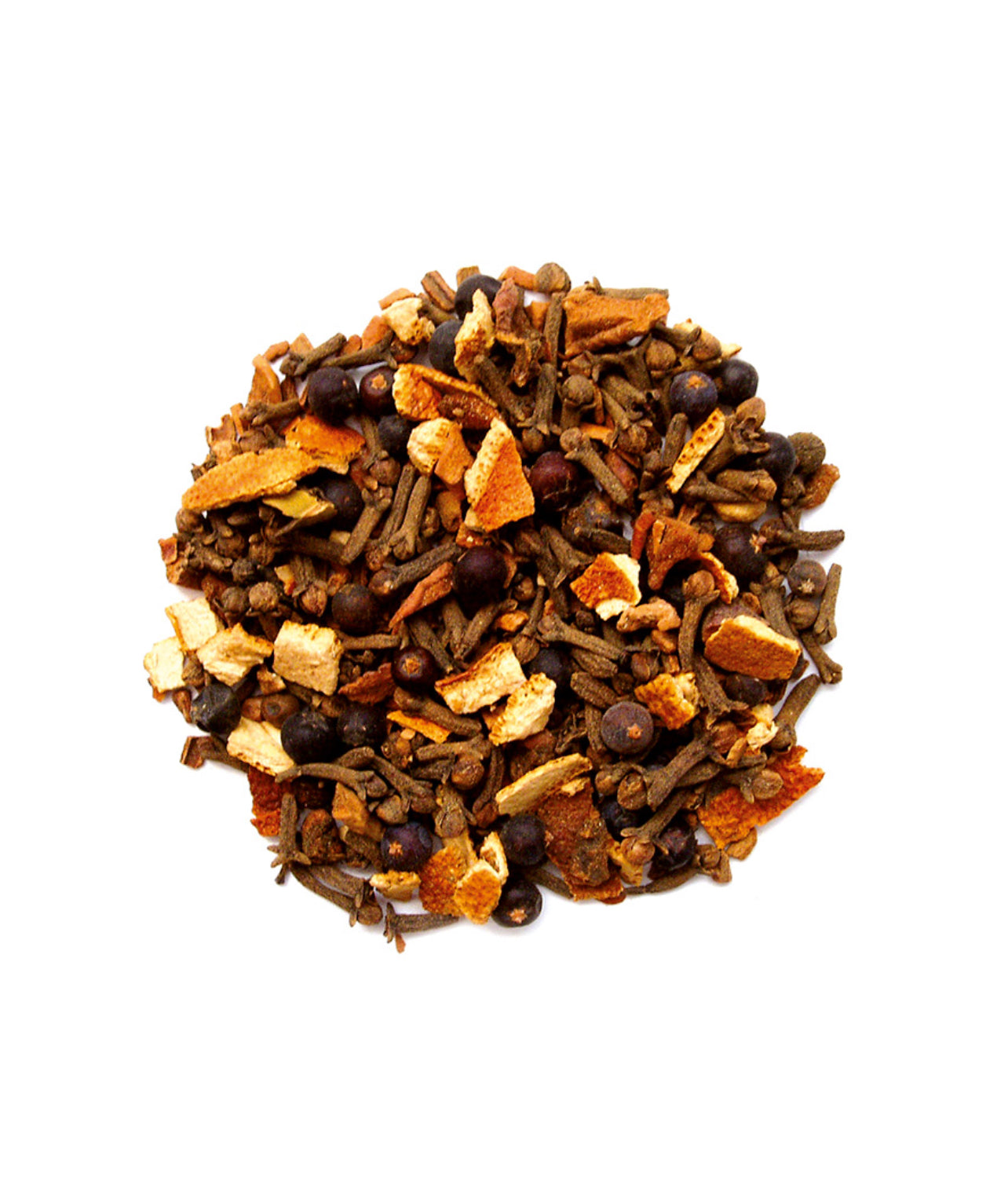 Ingredienti: cannella (35%), chiodi di garofano (25%), bacche di ginepro (10%), anice stellato, pezzi di mela (8%), scorze d’arancia (8%).